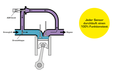 Das AGR-Ventil ist eine wichtige Komponente in dem Teil des Motors, der sicherstellen soll, dass die NOx Verunreinigung des Fahrzeugs reduziert wird. Das AGR System schickt einen Teil der Auspuffabgase zurück in die Verbrennungskammern, wodurch die Verbrennungstemperatur markant gesenkt und somit die Menge der schädlichen NOx Gase reduziert wird.