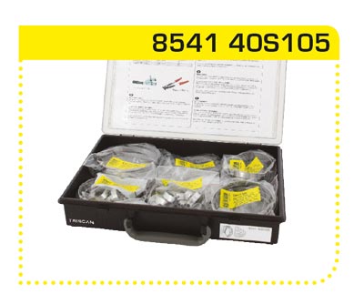 Die Schlauchschellensortimente, die beide Schlauchschellen des Oetiker-Typs beinhalten, unterscheiden sich dadurch, dass die 8541 40S 105-Reihe 9mm rostfreie Schellen enthält, die für thermoplastische Gelenkwellenmanschetten verwendet werden. Das Set enthält insgesamt 40 Schellen in 8 verschiedenen Größen – 5 von jeder Größe.