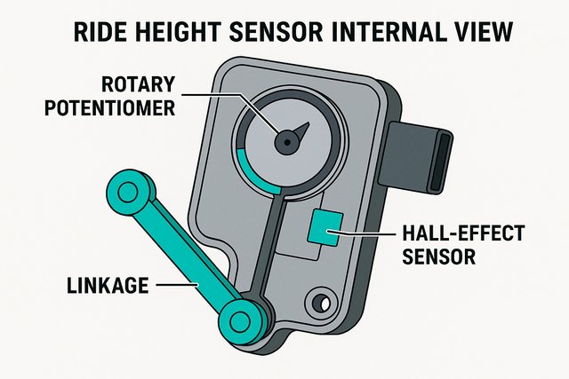 Level sensors are mounted in the undercarriage, where they create a connection between the body and the suspension via one or more moving joints. Using a potentiometer or a Hall effect sensor, the level sensor detects the angle of the lever, which continuously changes in line with the load the suspension is exposed to. The sensor sends a voltage signal to the ECU (Electronic Control Unit), which is used to interpret the ground clearance and adjust the suspension and/or headlight angle accordingly.