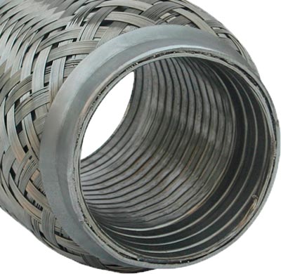 Flexrør som tåler temperaturer op til 800°C er typisk placeret i starten af udstødningssystemet. Trykket i denne del af udstødningssystemet overstiger 20 psi og flexrøret skal derfor være konstrueret i en tre-lags konstruktion som vist her.