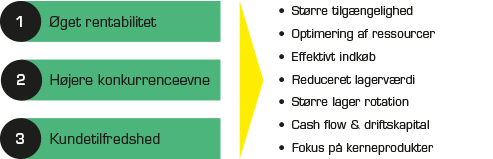 • Nedbringelse af lagerværdi og administrative omkostninger