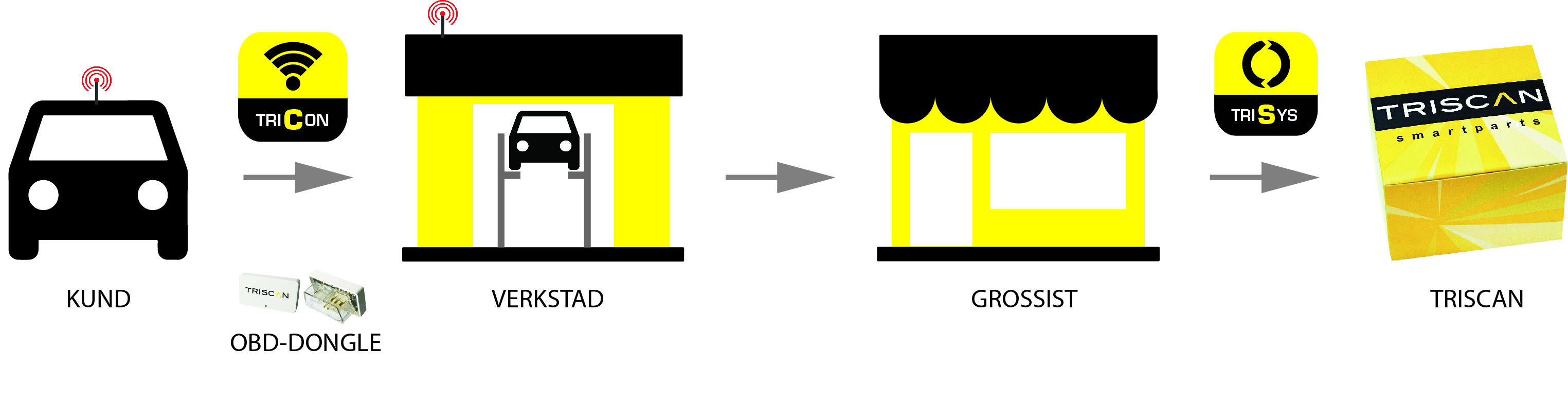 Men snart utvidgas TriSys också med TriCon - en prisbillig connectivity/OBD dongle-lösning. Härmed får verkstaden tillgång till fordonsdata, vilket är nödvändiga för att säkerställa pålitlig drift av kunders fordon och samtidigt undgå obehagliga överraskningar. Till exempel får verkstaden information om både kommande och aktuella fel, körsträcka, batterispänning etc. Med denna information kan verkstaden agera proaktivt i förhållande till att erbjuda felsökning, reparation och service.