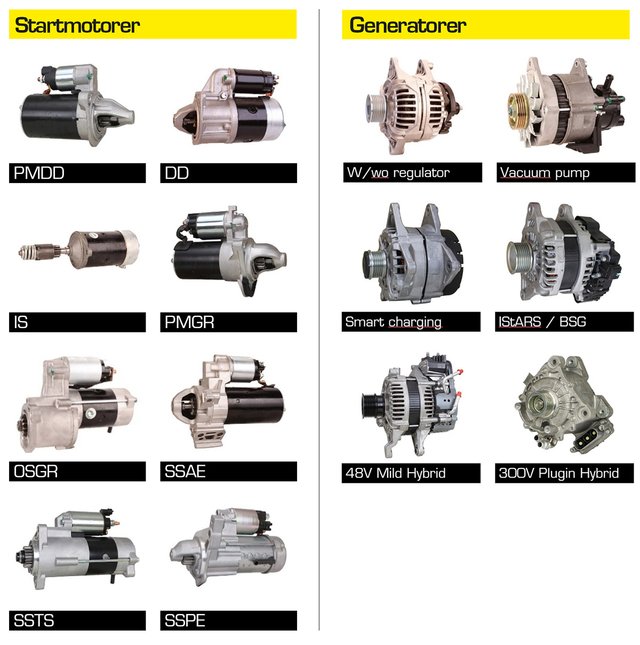 Sortimentet av startmotorer omfattar alla typer: